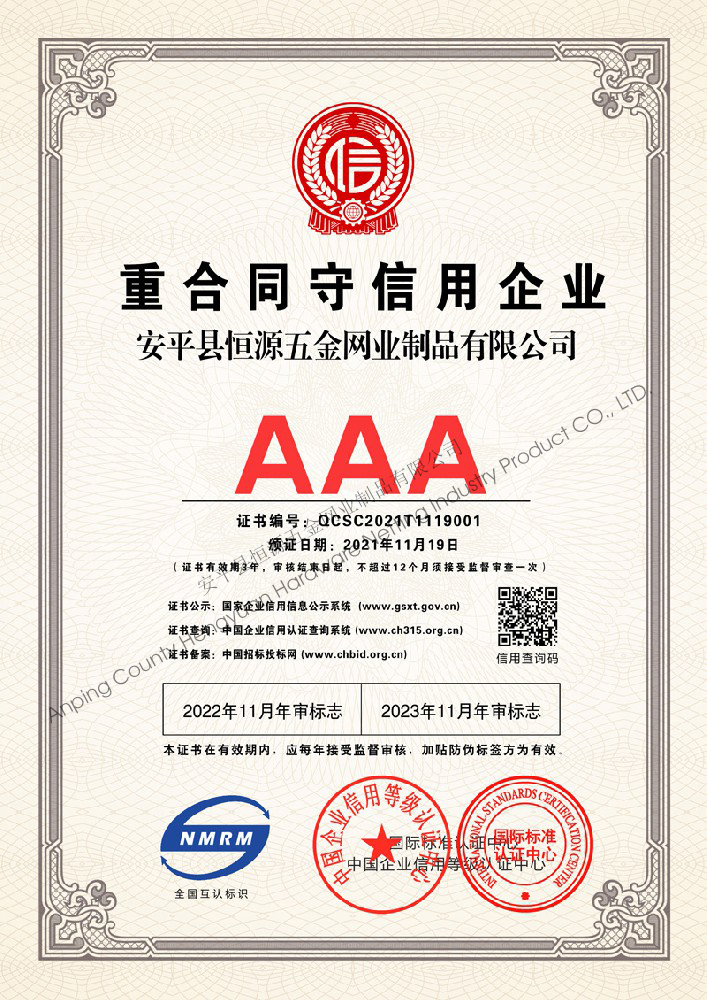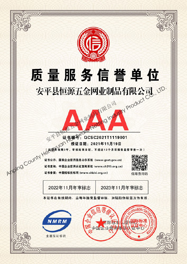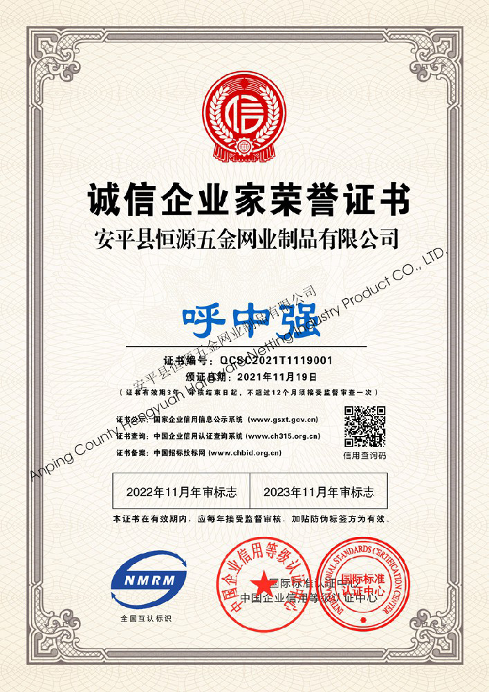 多年來,安平縣恒源五金網業(yè)制品有限公司堅持“科技興企、質量立業(yè)”的經營理念和“誠心為本、客戶至上”的合作宗旨,優(yōu)化生產工藝,打造優(yōu)質產品,提供完善的服務,受到國內外客戶的一致好評,產品行銷全國各地,并出口美國、德國、韓國、日本、臺灣等國家和地區(qū)。